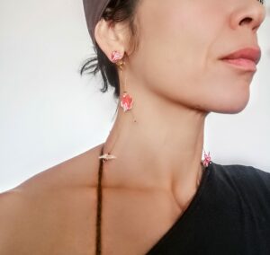 Sakura Earrings with pink crane