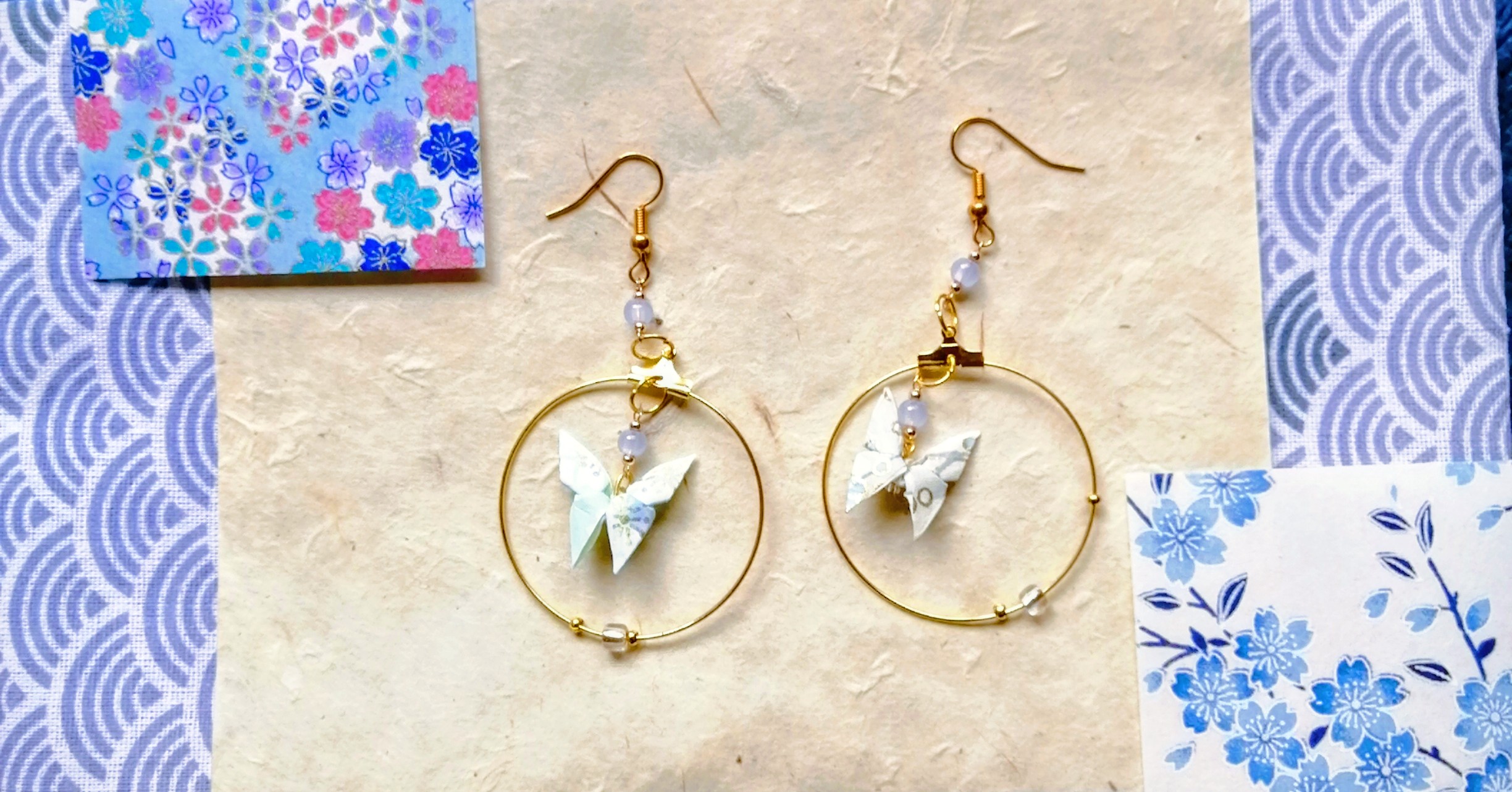 Papillon Origami Hoop Earrings – Yuzen Washi