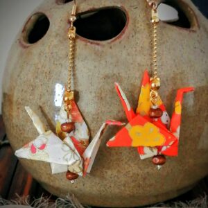 Be the first to review “Tsuru Earrings – Origami Summer Crane in Yuzen Washi Paper with wooden pearls”