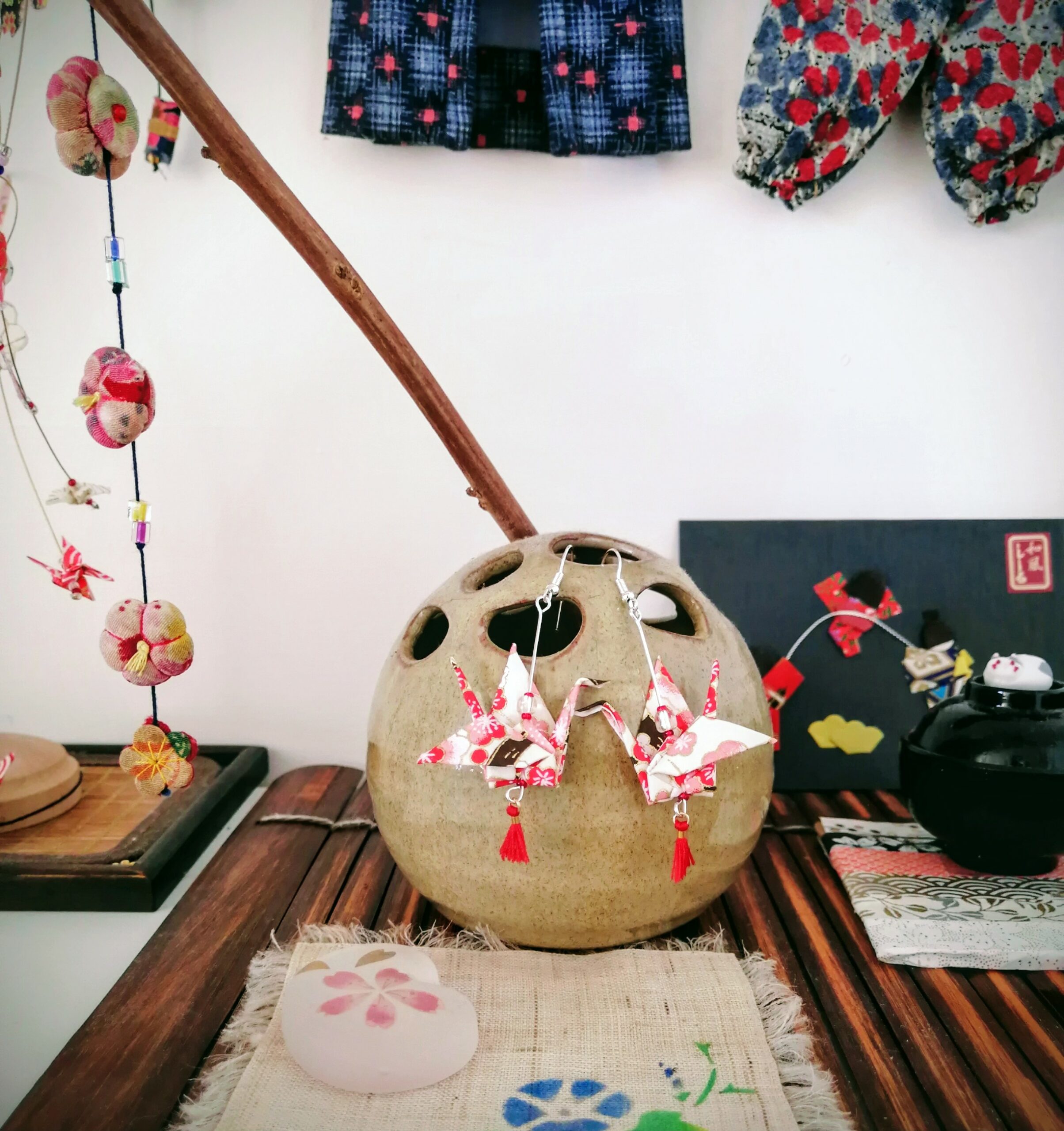 Materials: Yuzen Washi paper, decorative beads, silver-plated chain and hooks (hypoallergenic)