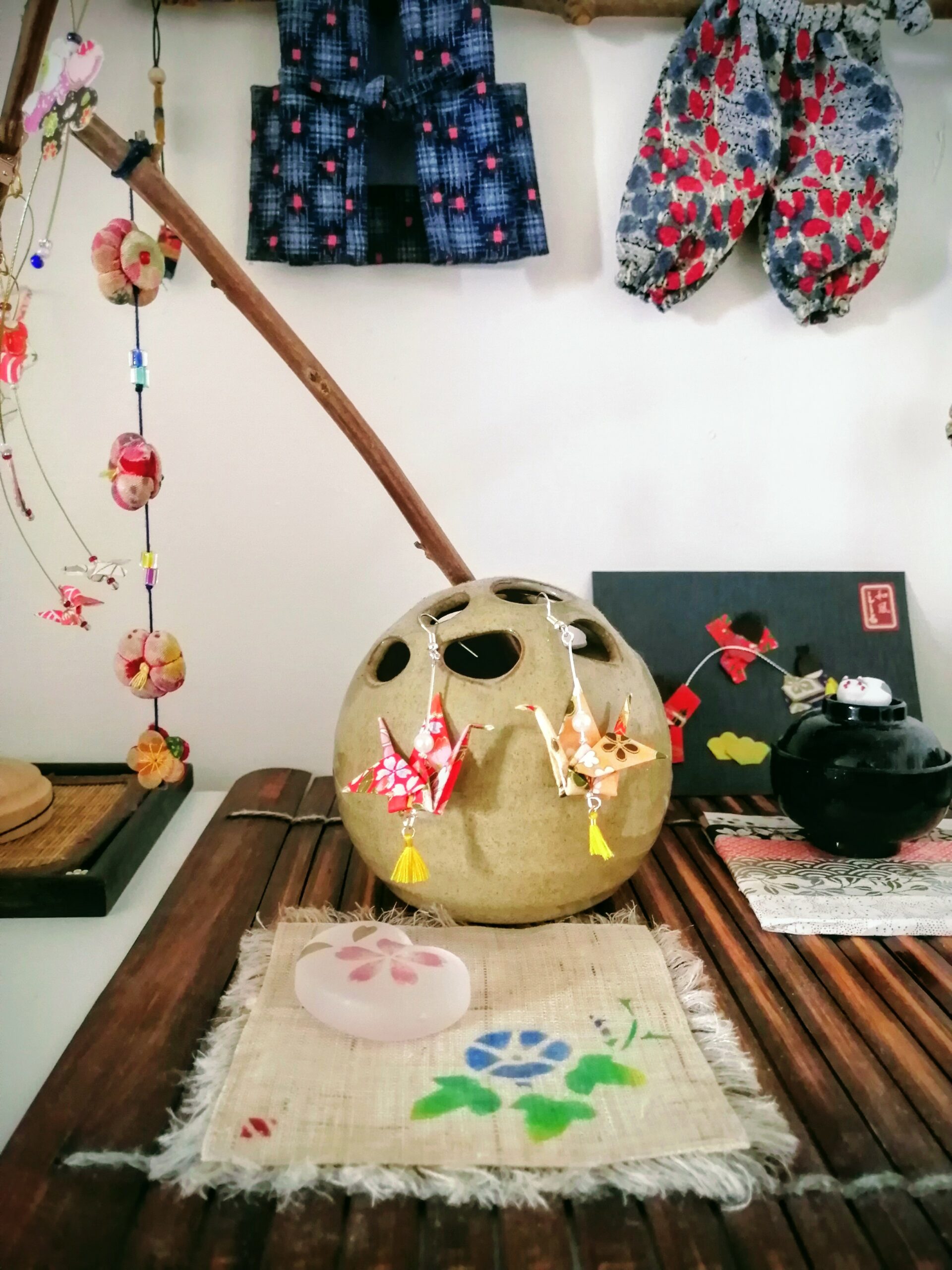 Materials: Yuzen Washi paper, decorative beads, silver-plated chain and hooks (hypoallergenic)